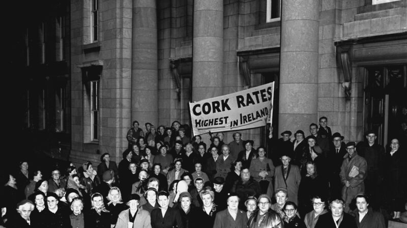 The old days: Women march to Cork City Hall in 1957 to protest over domestic rates. At the time, valuation levels had not changed for a century