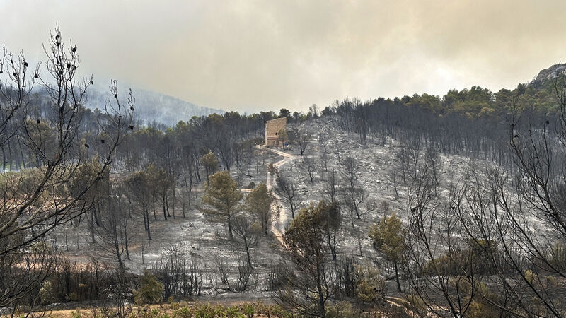 A house stands in the middle of burned trees during France’s biggest wildfire this summer, near Durban-Corbieres, southern France Picture: Hernan Munoz/AP